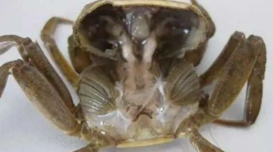 河蟹患颤抖病后鰓丝苍白水肿,胃内无食物