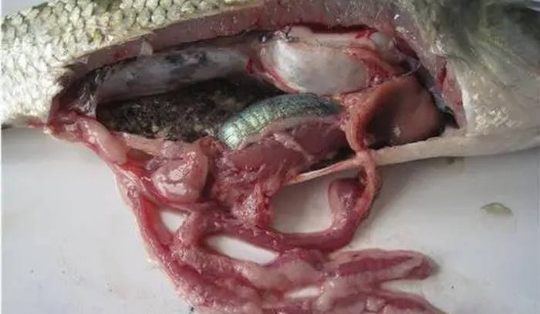 草鱼感染细菌性肠炎后肠壁局部充血发炎及肠道无食
