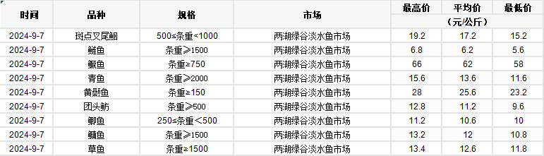 2024年9月7日 行情|湖北省主要水产品价格明细