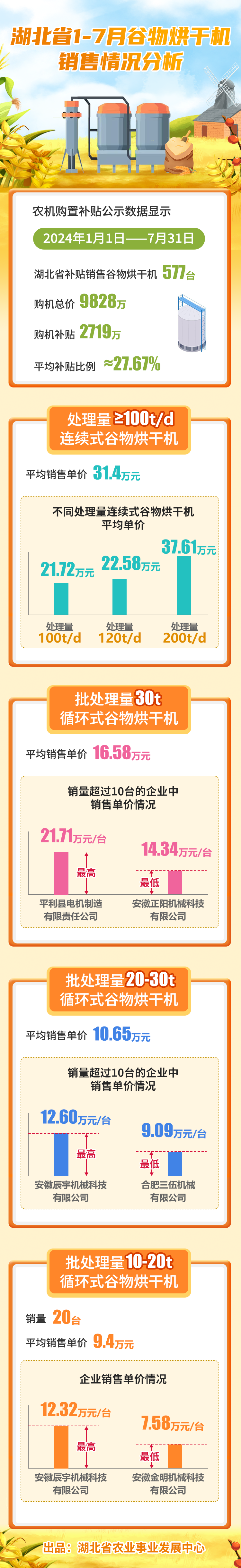我省1-7月谷物烘干机销售价格区间全解析! 2024-09-12 14:58 0 来源 | 湖北省农业事业发展中心 编辑 | 李金霞 编审 | 刘友智 监制 | 田国英 声明 | 本文转自以上平台,版权归原作者所有,如有侵权请联系删除