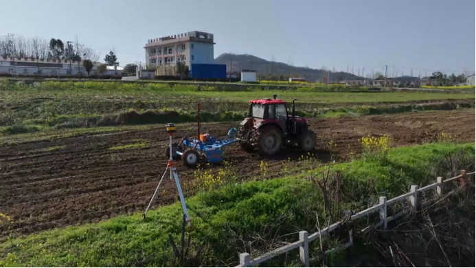 田家少闲月,五月人倍忙。在浠水县散花镇柏杨村长福水稻专业合作社的一片田里,技术员周希平正在操作激光平地机平整土地。他告诉记者,激光平整器平整效率高,误差小。