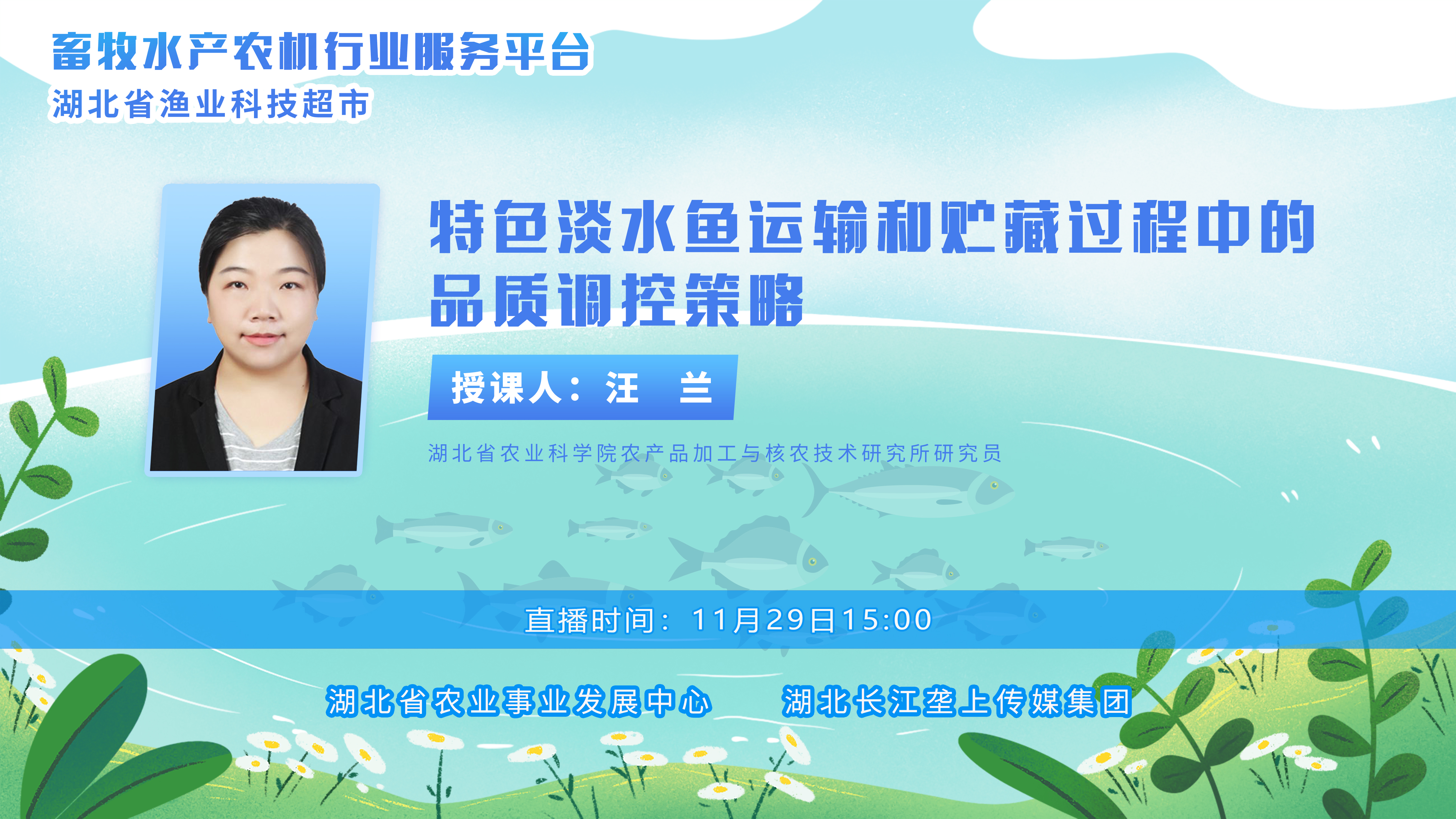 直播预告|特色淡水鱼运输和贮藏过程中的品质调控策略 2024-11-29 09:36 0 畜牧水产农机行业服务平台 ——湖北省渔业科技超市 01现场云直播观看入口 03云上垄上直播观看入口 01直播时间11月29日15:00 02直播主题特色淡水鱼运输和贮藏过程中的 品质调控策略 03直播嘉宾湖北省农业科学院农产品加工与 核农技术研究所研究员汪兰 编辑 | 李金霞 编审 | 刘友智 何聆溪 监制 | 田国英 刘迎春