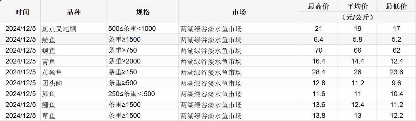 2024年12月5日 行情|湖北省主要水产品价格明细