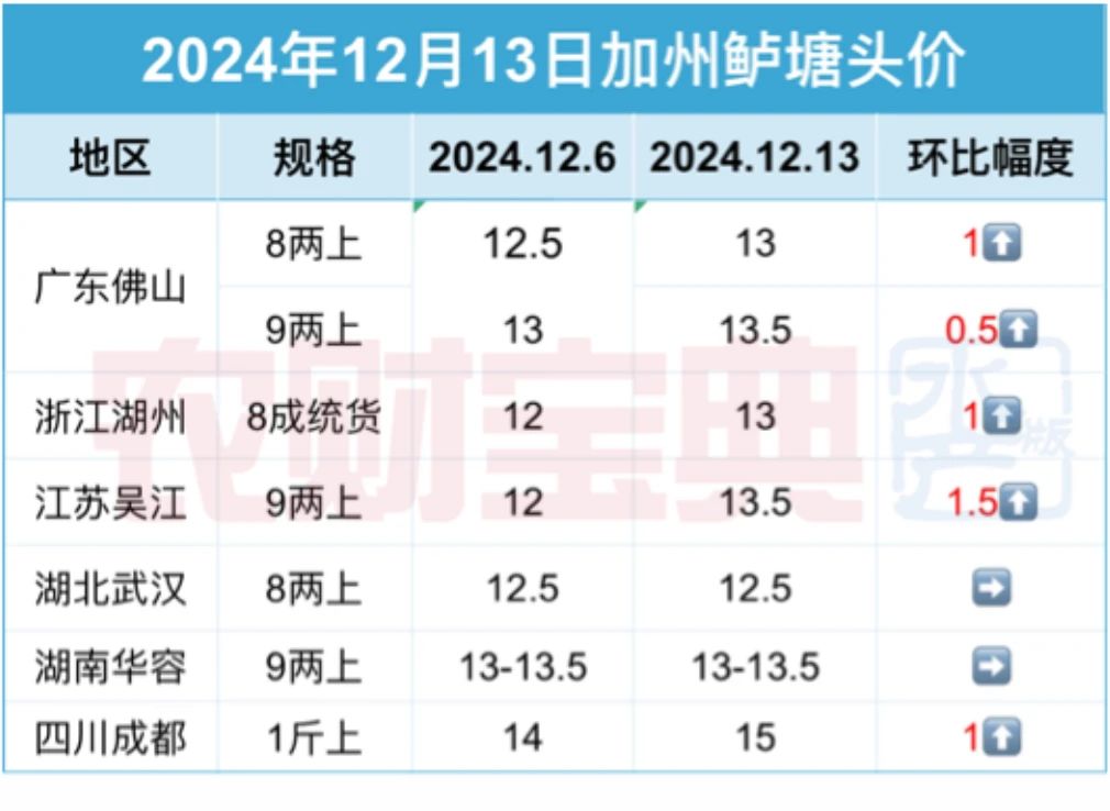 成都地区1斤上规格15元/斤,较上周上涨1元/斤,当地存塘较少,流通量也比较低。