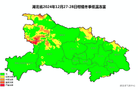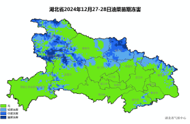 湖北省2024年12月27-28日油菜苗期冻害和柑橘冻害风险预警图