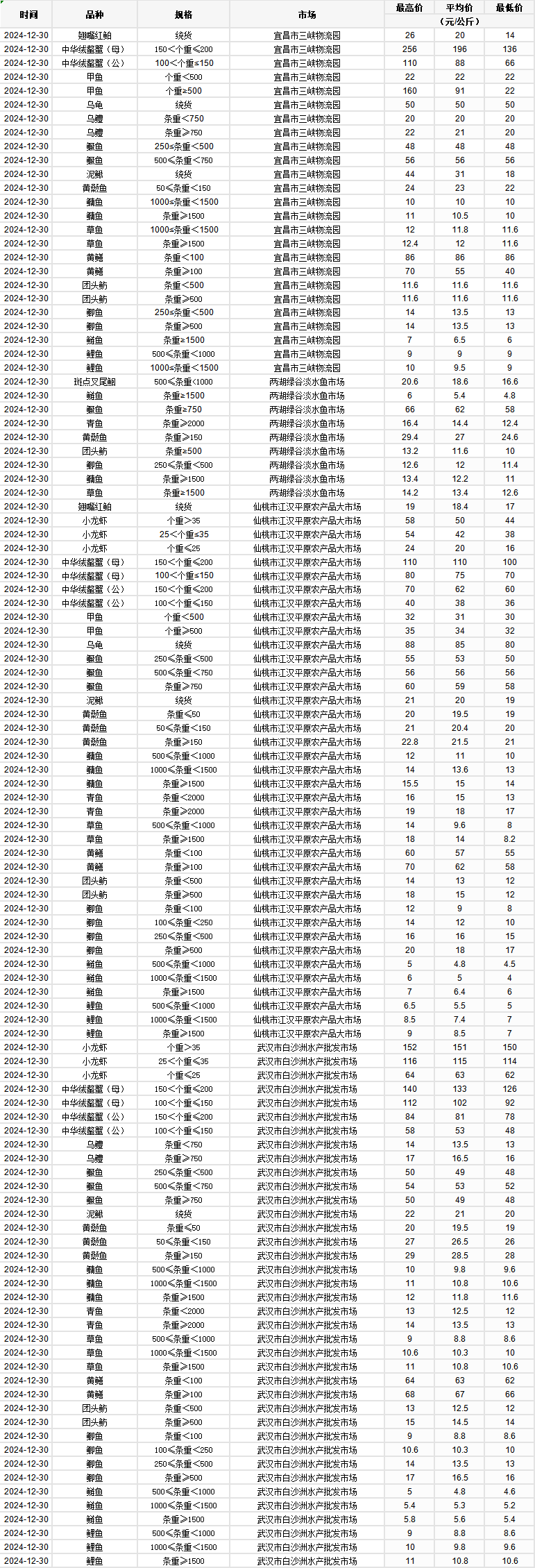 2024年12月30日 行情|湖北省主要水产品价格明细