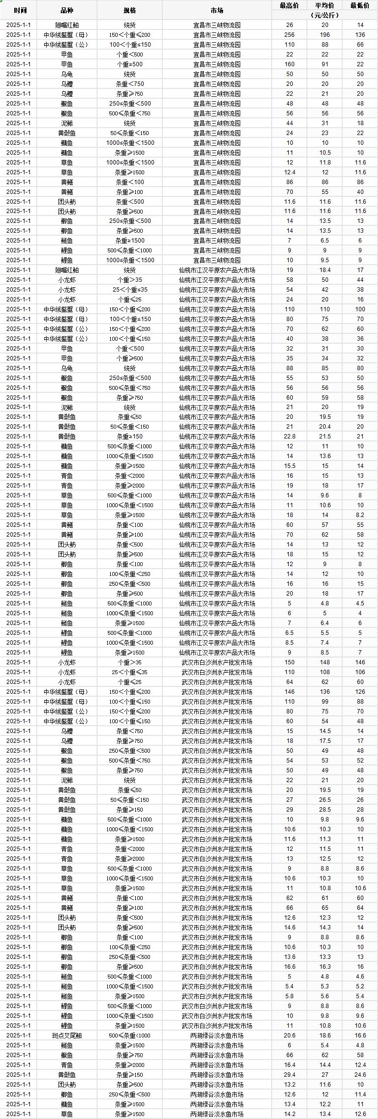 2025年1月1日 行情|湖北省主要水产品价格明细