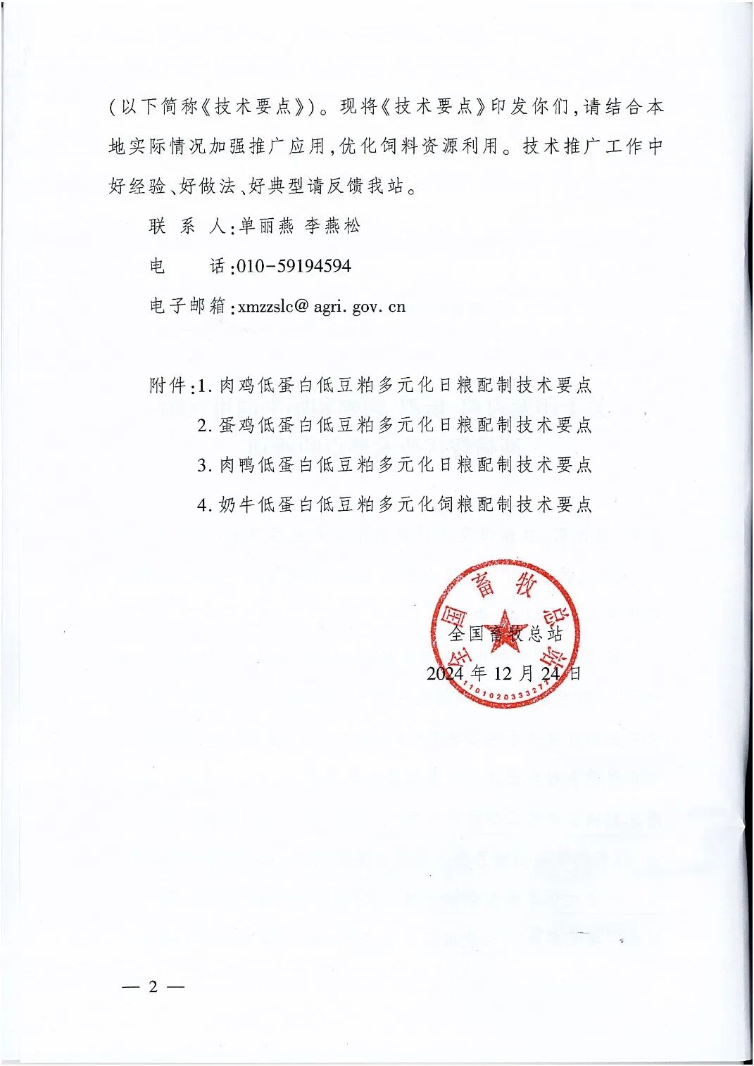 关于印发肉鸡、蛋鸡、肉鸭和奶牛饲用豆粕减量替代技术要点的通知 2025-01-06 16:54 0 来源 | 全国畜牧总站 编辑 | 李金霞 编审 | 刘友智 何聆溪 监制 | 田国英 刘迎春 声明 | 本文转自以上平台,版权归原作者所有,如有侵权请联系删除