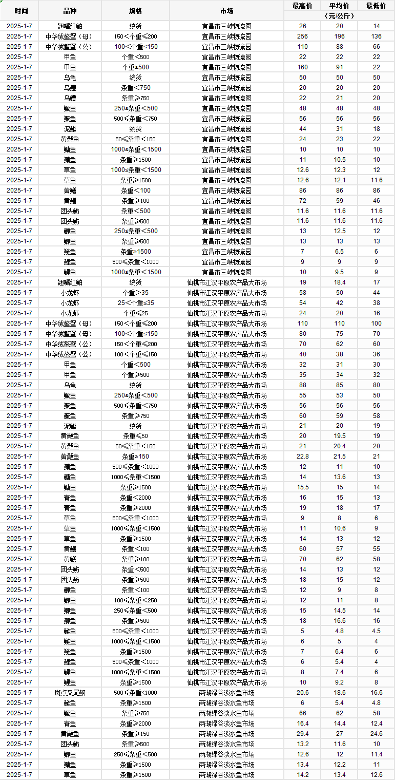 2025年1月7日 行情|湖北省主要水产品价格明细