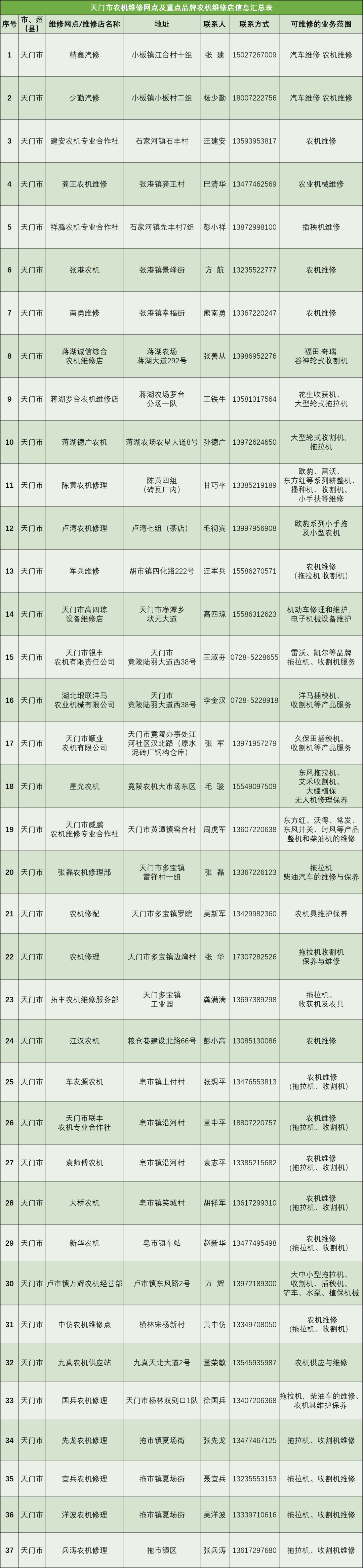 为更好地服务全省农业生产,保障农业机械化高效、安全、可持续发展,确保农机具在关键农时的正常运转,现将天门、潜江农机维修网点及重点品牌农机维修店信息予以发布。(全部地区均已更新)