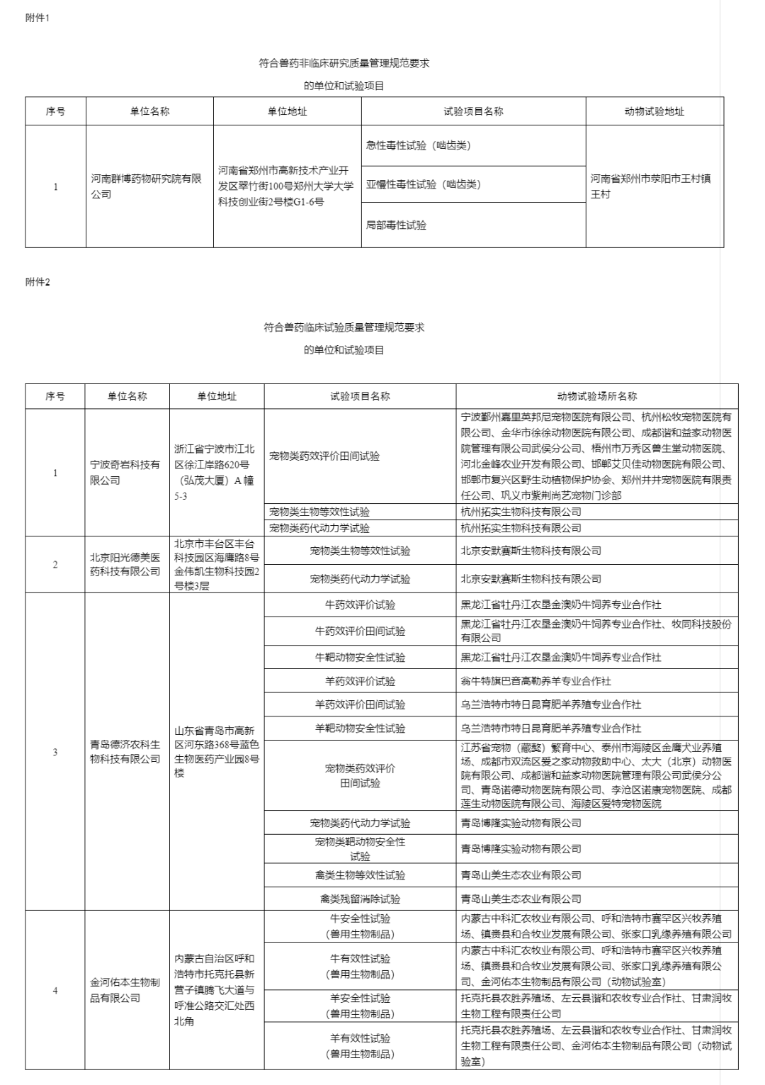 2.符合兽药临床试验质量管理规范要求的单位和试验项目