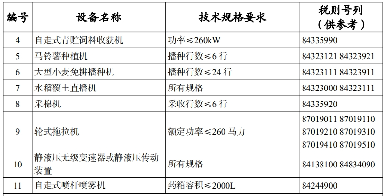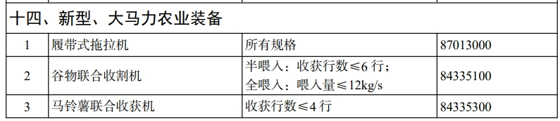 从《进口不予免税的重大技术装备和产品目录(2025年版)》不难看出,履带式拖拉机等11种农机进口将不予免税。