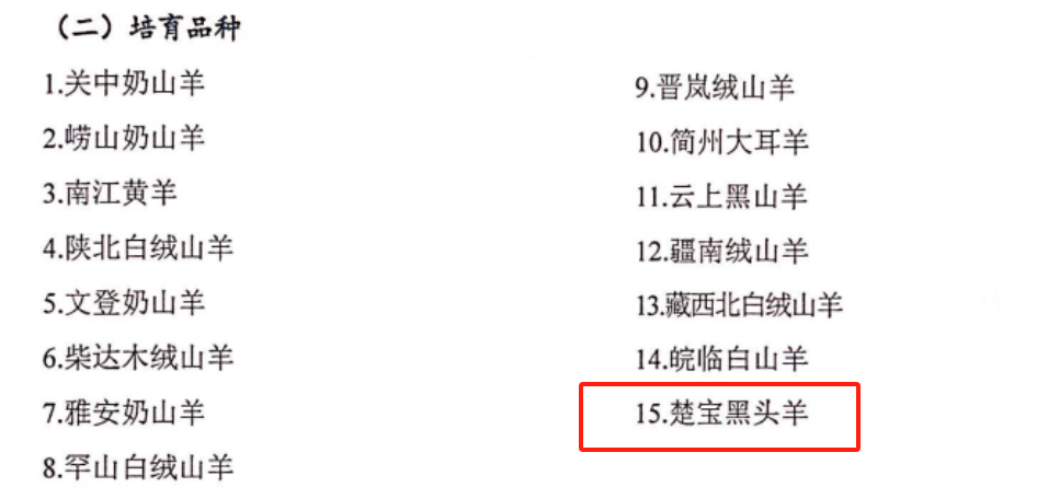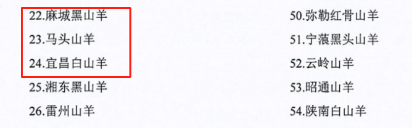 3个羊品种:麻城黑山羊、马头山羊、宜昌白山羊。