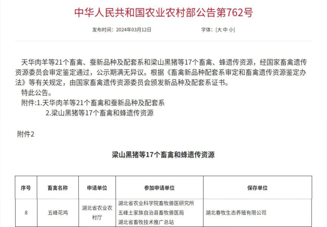 五峰花鸡通过审定成为国家级遗传资源(3月)