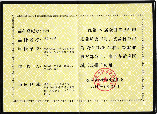 清江鸭茅通过牧草新品种审定(8月)