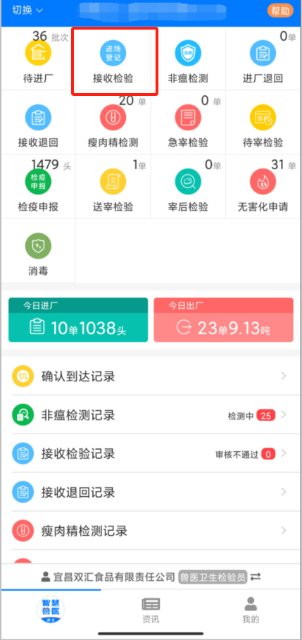 当贩运主体到达屠宰场之后,屠宰场兽医卫生检验员做接收检验(落地报告),完成落地报告工作。