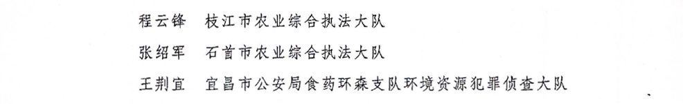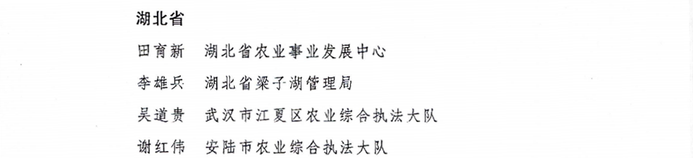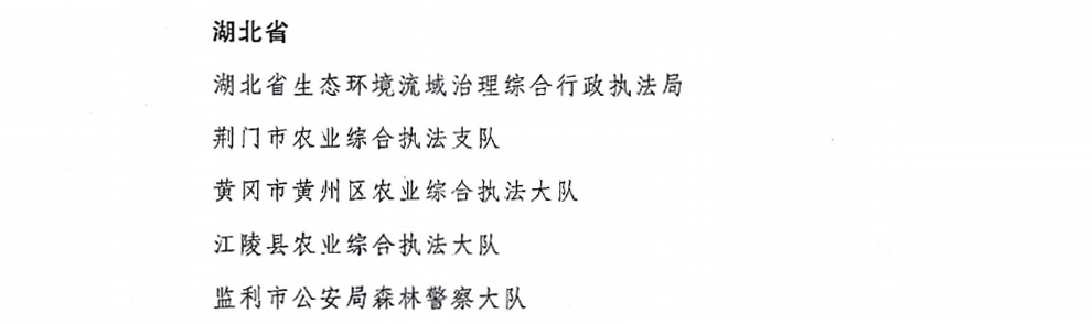 近日,农业农村部、公安部、中国海警局等国家三部门联合发文,对2024年全国渔业行政执法系列专项行动工作突出的172个集体和284名个人给予通报表扬,湖北省生态环境流域治理综合执法局等5家单位、湖北省农业事业发展中心田育新等7名个人获得表彰。