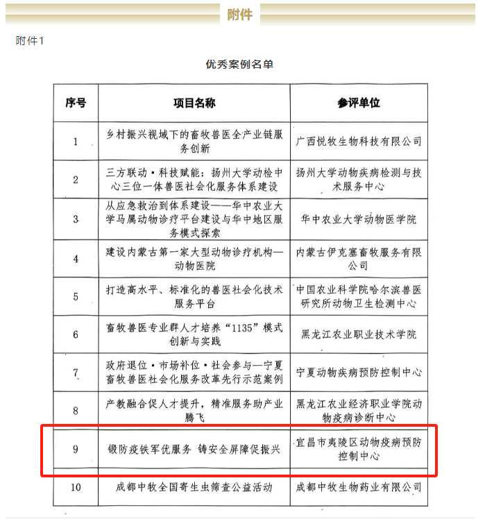 5月19日,中国兽医协会公布全国畜牧兽医社会化服务先行案例评审结果,宜昌市夷陵区《锻防疫铁军优服务 铸安全屏障促振兴》案例脱颖而出,入选全国优秀实践典范,这一创新模式不仅破解了基层动物防疫“最后一公里”难题,更以科技赋能、机制革新为畜牧业高质量发展注入新动能,为乡村振兴筑牢产业安全屏障。