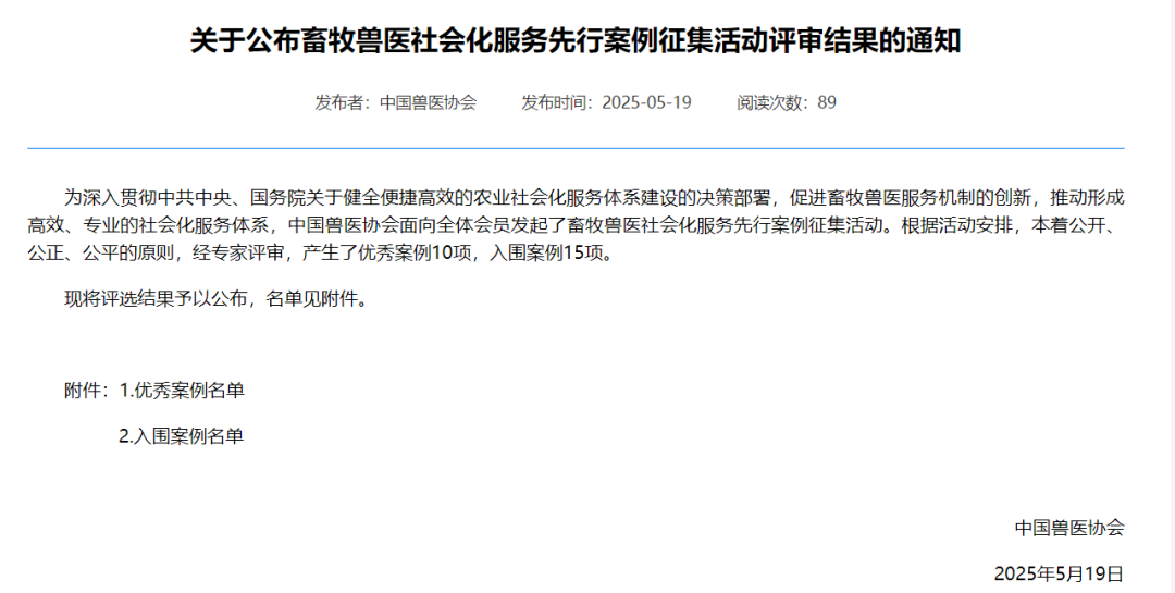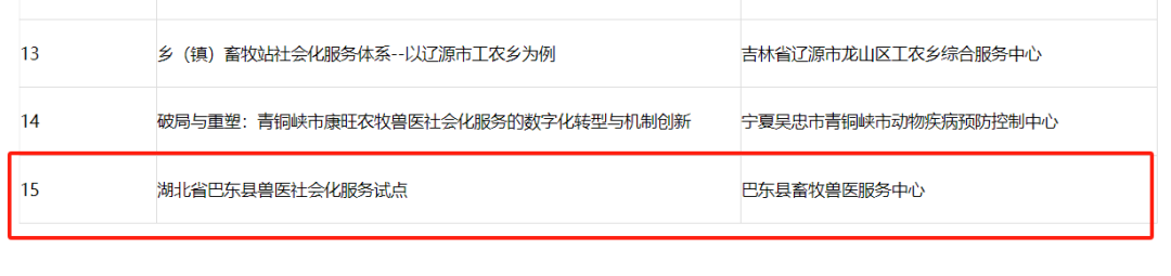 近日,中国兽医协会公布全国兽医社会化服务先行案例评审结果,巴东县案例入选全国入围案例。