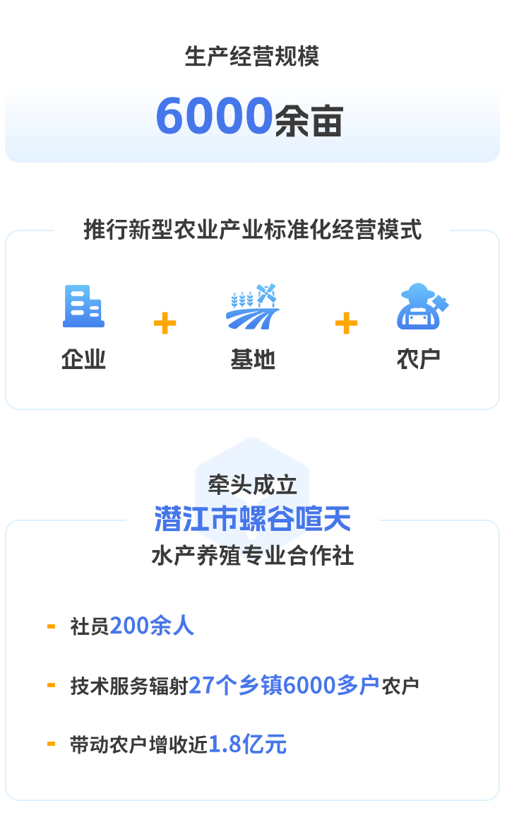 潜江市肖螺香水产食品有限公司 养殖模式为“稻虾螺”综合种养
