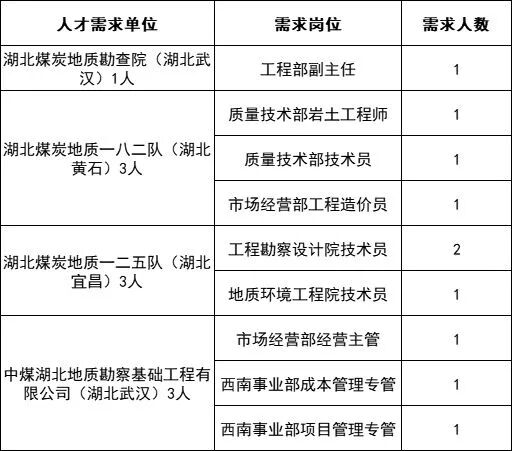 本次招聘共9个岗位10人,详见《中煤湖北局公开招聘岗位信息表》(附件1)。
