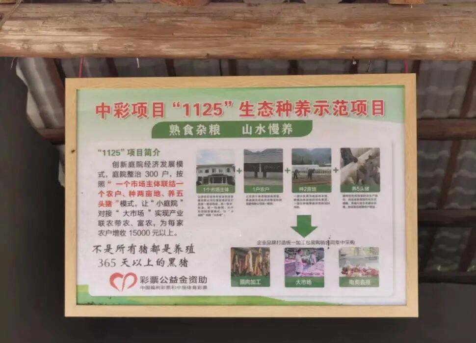 推广“1125”生态养殖模式,由市场主体联结农户,每户养殖5头硒都黑猪,统一提供仔猪、技术指导,承担部分成本,按保底价格收购,共联农带农309户示范农户,户均年净增收超8200元。