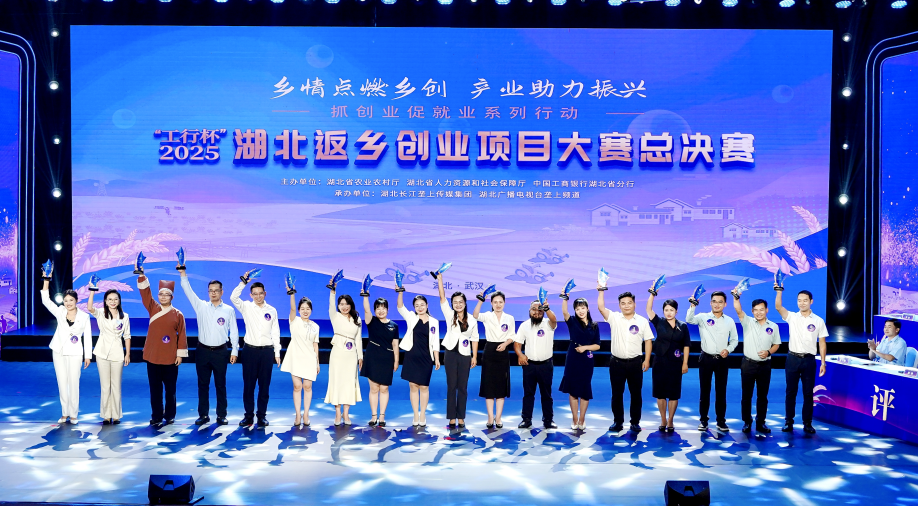 8月16日下午,“工行杯”2025湖北返乡创业项目大赛总决赛在武汉成功举办。本次大赛是全省“抓创业促就业”系列行动之一,由湖北省农业农村厅、湖北省人力资源和社会保障厅、中国工商银行湖北省分行联合主办,湖北长江垄上传媒集团、湖北广播电视台垄上频道承办。来自各省直单位、17个市州相关部门及金融机构负责人等300余人参加现场活动。