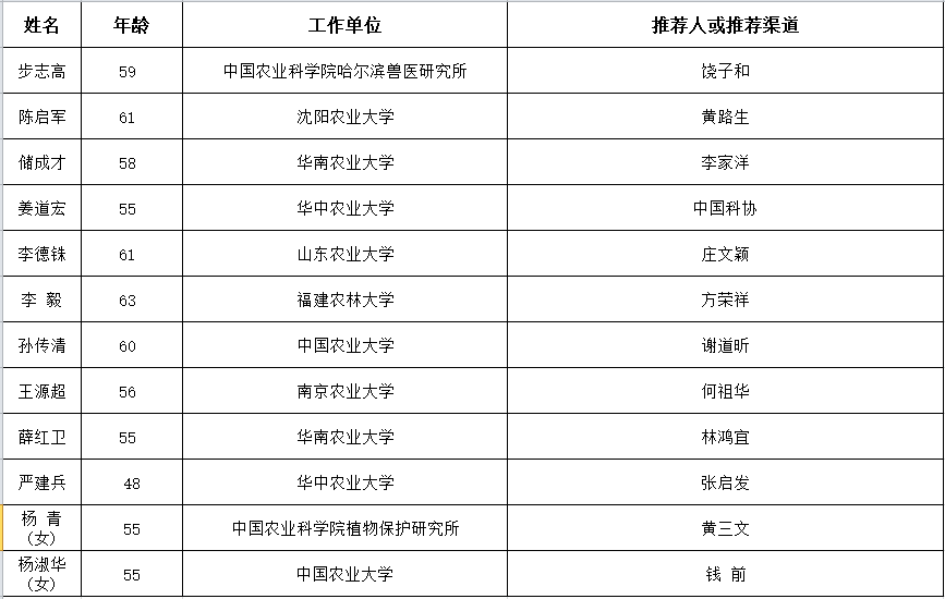 据不完全统计,在125位候选人中有多位来自高校和科研机构农业领域的专家。(名单附后)