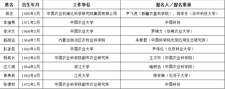 8月20日,中国工程院公布2025年院士增选有效候选人名单。其中,农业学部83人,农业工程领域有多位专家入选: