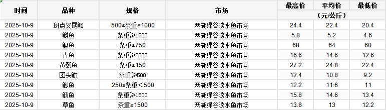 说明:以上各行情来源于“湖北省水产品批发市场信息采集分析平台“,经湖北省农业科技超市授权发布。