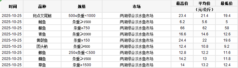 说明:以上各行情来源于“湖北省水产品批发市场信息采集分析平台“,经湖北省农业科技超市授权发布。