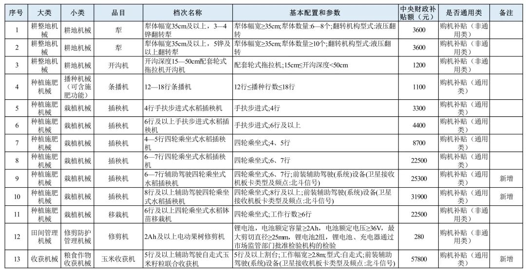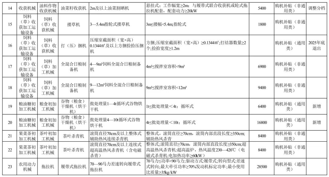 省农业农村厅近日发布通告,确定湖北省2024-2026年农机购置与应用补贴机具补贴额一览表(2025年调整)。新的补贴标准自2025年11月7日起执行。