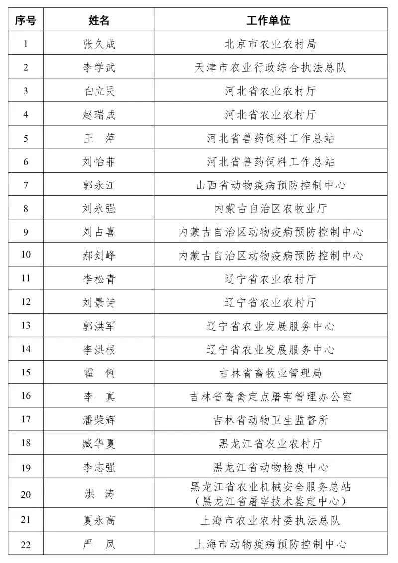 附件:1.畜禽屠宰质量管理专家库专家名单