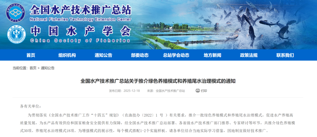近日,全国水产技术推广总站发布关于推介绿色养殖模式和养殖尾水治理模式的通知,推介30项绿色养殖模式和18项养殖尾水治理模式。