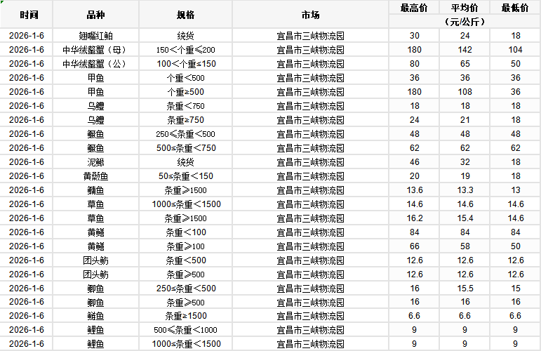 说明:以上各行情来源于“湖北省水产品批发市场信息采集分析平台“,经湖北省农业科技超市授权发布。