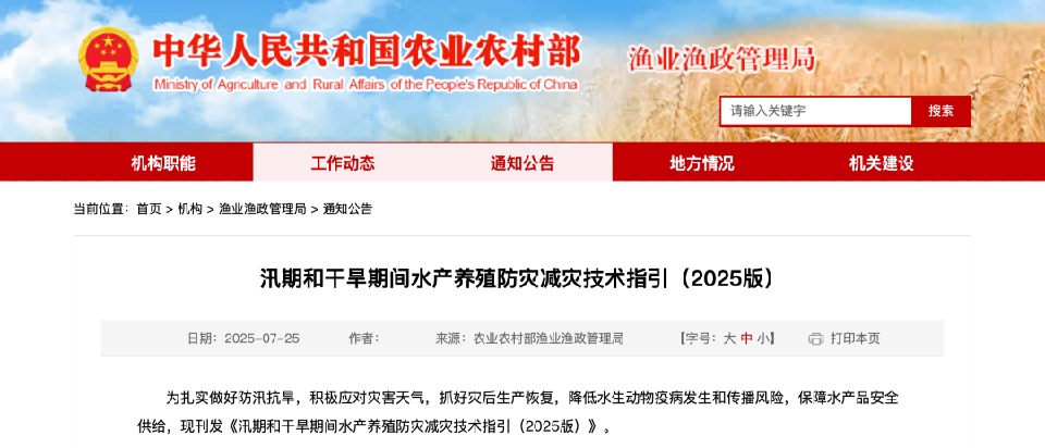 汛期和干旱期间水产养殖防灾减灾技术指引(2025版)发布